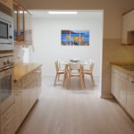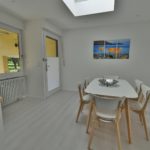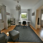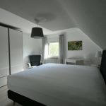 Die voll möblierte Doppelhaushälfte drei Etagen, zwei Schlafzimmer mit komfortablen Boxspringbetten (King-size), komplett ausgestattete Einbauküche offen übergehend in grosszügigen Essbereich mit Oberlicht und Hofeingang, Arbeitszimmer mit 150Mbit Internet, übergehend in Wohnzimmer mit 100cm Kabel-TV, Tageslichtbad und zwei Toiletten, freies Studio, Garderobe, separate Waschküche (moderne Waschmaschine und Wäschetrockner, Bügelbrett und -Eisen), weiterer Kellerraum nach Vereinbarung, gepflegt, nicht barrierefrei bei ein paar Stufen ins EG und Treppe in OG